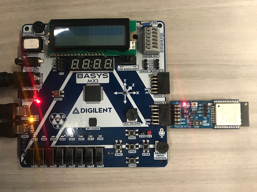 硬件方面:我正在使用Digilent BasysMX3,它基本上是PIC32的一个方便的小开发板。它有LED,一个RGB LED,两个Pmod端口,一个系统内的程序员和调试器,一个16x2的LCD屏幕,一个集成的h桥,按钮,四个7段显示,以及一大堆其他有趣的东西。在这个项目中,我只使用led和uart控制器。为了连接到我的python服务器,我使用Pmod ESP32。这基本上是Digilent自己的Pmod板,配备了来自espresso的ESP32。这些ESP32芯片非常棒。它们支持WiFi/蓝牙4.2/BLE连接,拥有一整套外围设备,带有免费的RTOS,几乎可以做任何事情。