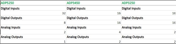 如上所述,ADP5250具有最多的电源通道,但它也具有最强大的通道。最高电压电源输出证明25V和最高电流输出提供1A,而相比之下,ADP3450和ADP3250的单个电源输出最多可在300mA时为3.3V。