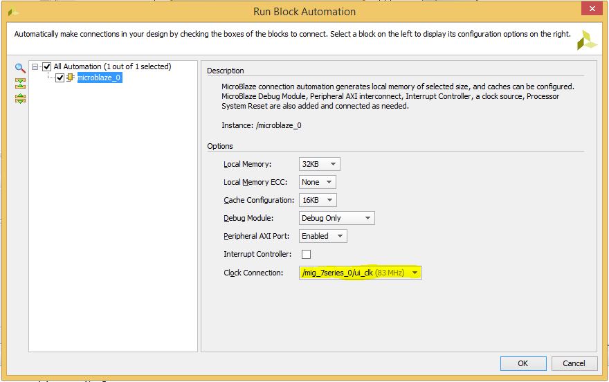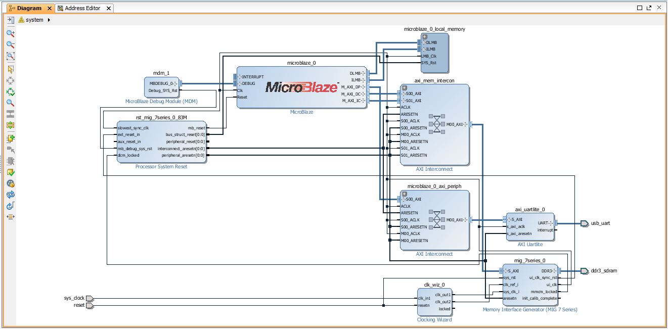 除了Microblaze IP块之外,我们还希望在Arty上使用DDR3 SDRAM组件。因此,我们的设计中将添加一个MIG(内存接口生成器)IP块。