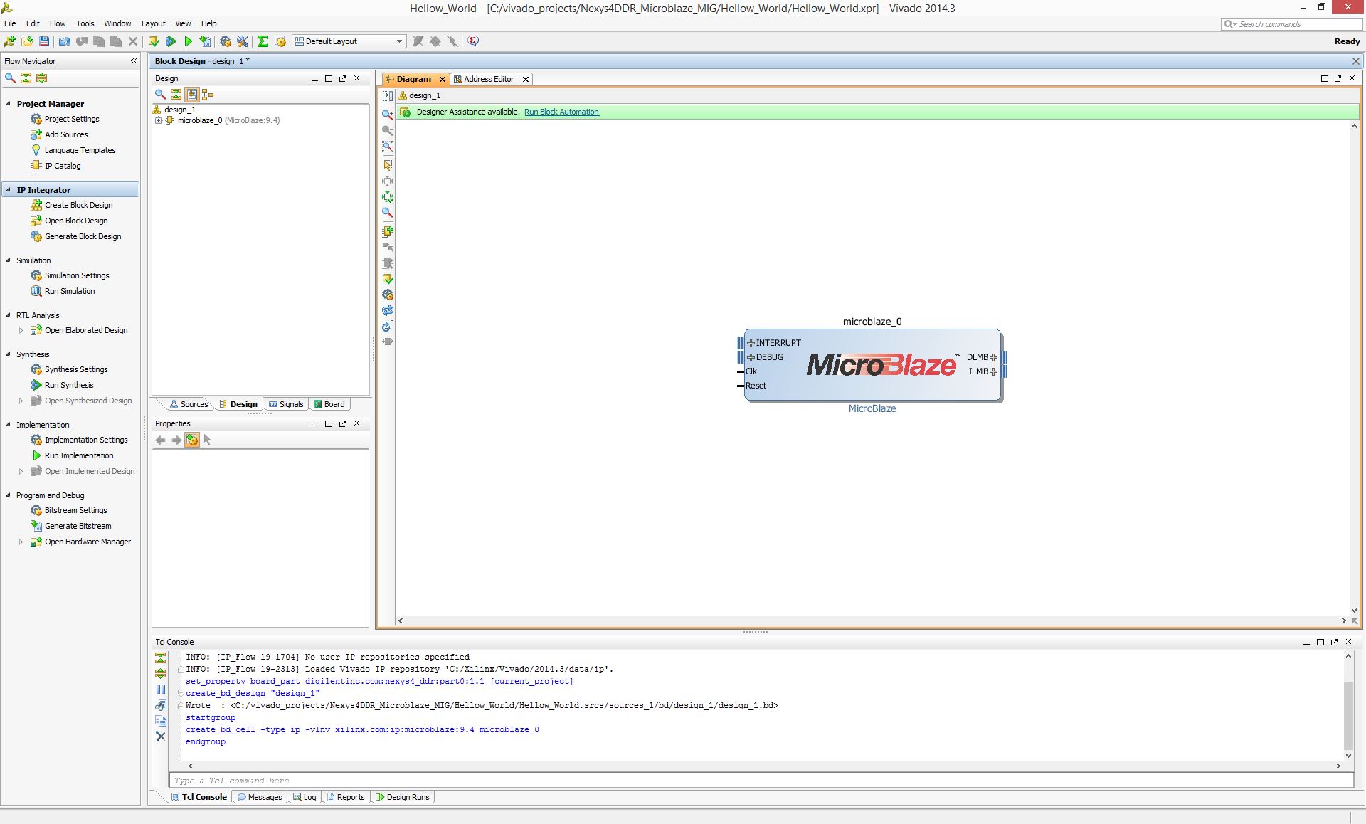 在本教程的最后,你将有一个全面的硬件设计的Nexys4 DDR,利用各种硬件端口的Nexys4 DDR是由Microblaze软核处理器块管理。