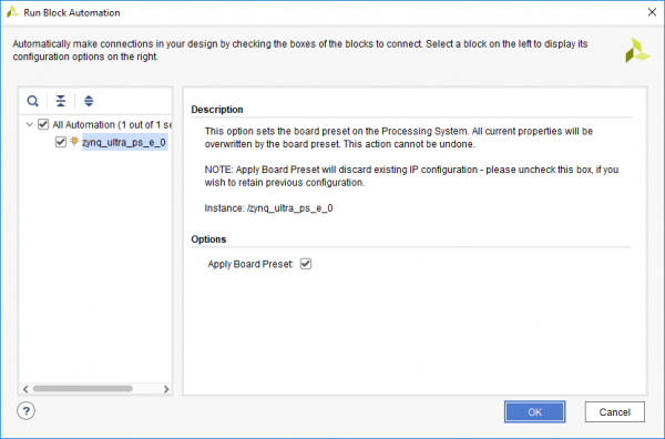 Digilent Zynq UltraScale板的板文件默认情况下至少启用一个低功耗域PL时钟,用于连接MPSoC的M_AXI_HPM0_LPD端口的外设。