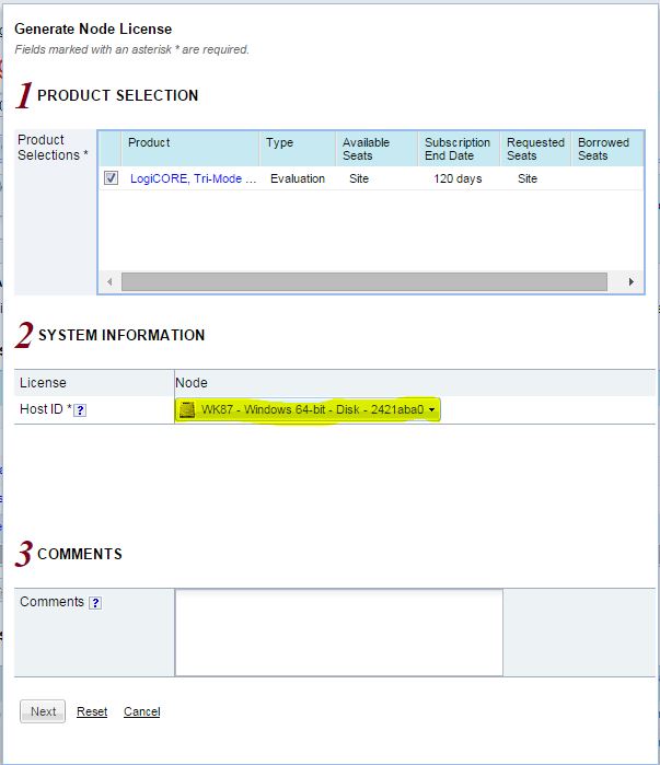下基于证书的许可证,向下滚动并单击您选择的LogiCORE IP旁边的框并单击生成节点锁定的许可证.